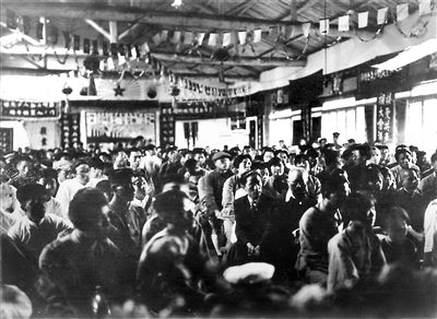 展品中,有兩張從俄羅斯征集來的照片尤為珍貴,是當年中共五大會場照片,系第一次在國內公開展出。照片上,與會代表們正聚精會神聽取大會報告(圖2)。