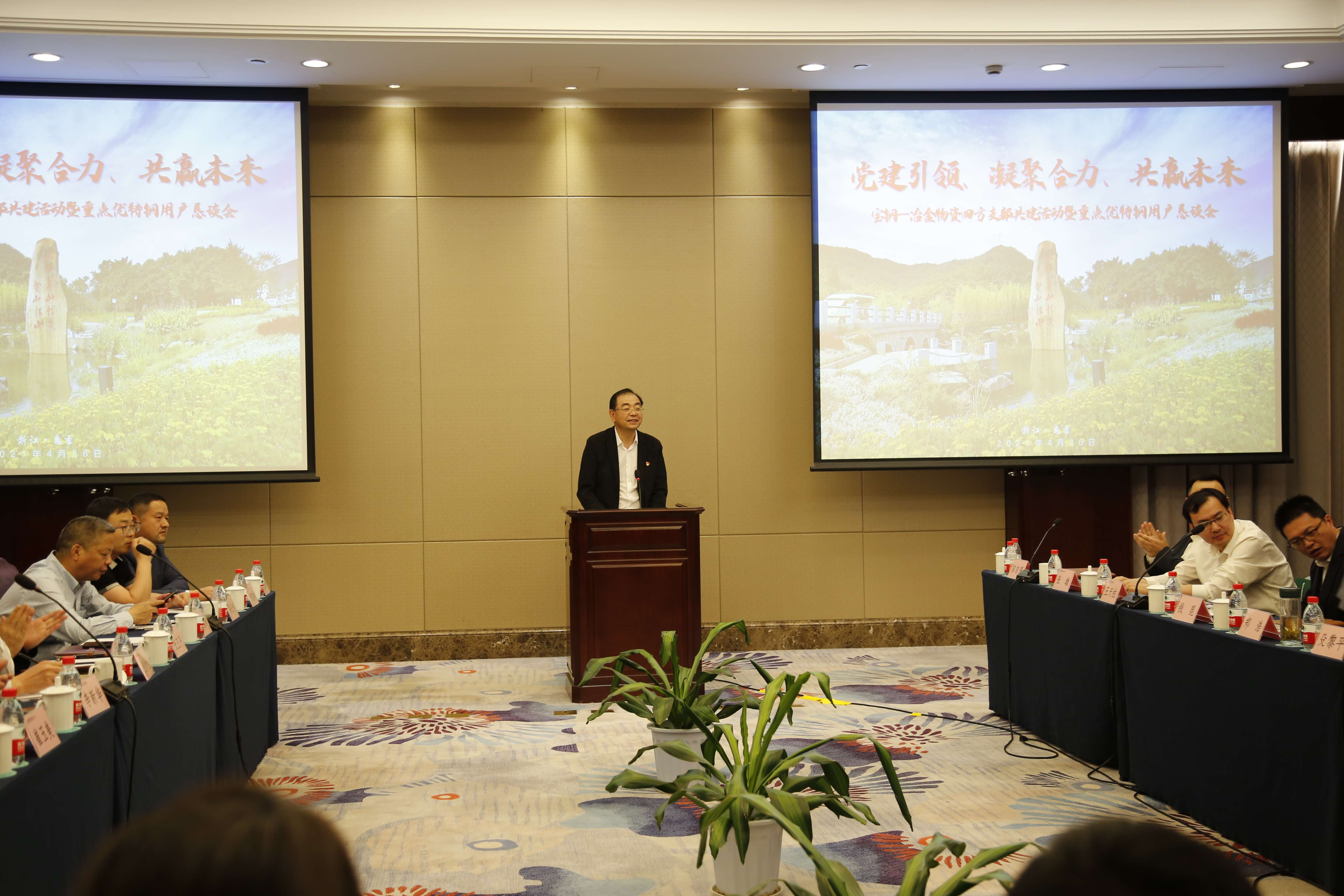 426日下午,冶金物資第一黨支部和寶鋼營銷中心熱板與工程材料銷售部黨支部、寶鋼鋼貿公司第一黨支部、梅鋼制造管理部產品制造黨支部開展結對共建交流活動并在杭鋼集團公司黨委副書記殳黎平,梅鋼副總經理聞發平、總經理助理程乃良及冶金物資、寶鋼營銷中心、寶鋼鋼貿、梅鋼等相關領導和供應鏈終端重點客戶代表60余人見證下簽訂四方支部共建合作協議書